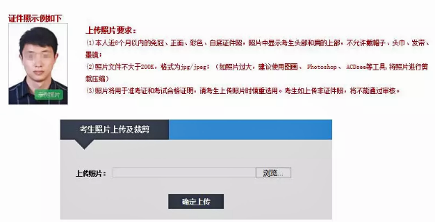(3)照片将用于准考证和考试合格证明,请考生上传照片时慎重选用。考生如上传非证件照,将不能通过审核。